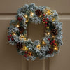 Electrónico. 3V 0.22 W. Utiliza 2 baterías AA (No incluidas). PVC y Hierro. D. 47 cm. Guirnalda: 77 cm de largo. Incluye: (30) luces LED, (5) Piñas de navidad y (5) Juegos de cerezas.