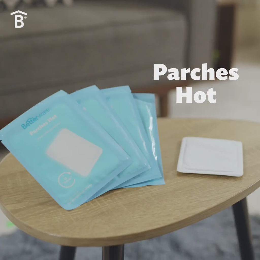Mantente calientito en todo momento con los Parches Hot Betterware. Este set de 5 calentadores portátiles y ligeros listos para cualquier situación estan elaborados con material suave que no molesta al contacto con la ropa. Para activarlo solo es necesario abrir el empaque ¡y listo! disfrutarás de hasta 12 horas de calor continúo. Son ideales para cólicos o dolores musculares.