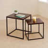 MDF y Acero pintado. Incluye 2 mesas: (1) Soporta: 10 kg. 51 x 50 x 45. (1) Soporta: 10 kg. 40 x 35 x 40 cm.
