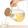 Vidrio, Bambú y Acero inoxidable. Capacidad: 1.8 L. D. 14 x 20 cm.